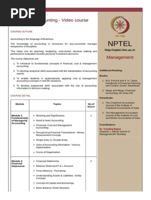 Varadraj Bapat Co-ordinating Institute - IIT - Bombay Sub-Titles - Available Unavailable MP3 Audio Lectures - Available Unavailable Lecture 1 - Introduction to Management Accounting Lecture 2 -. By examining accounting information that is extensively used across three key managerial functions of planning decision-making and controlling the course equips non-finance managers with basic accounting and finance skills. Production and Operation Management Prof.