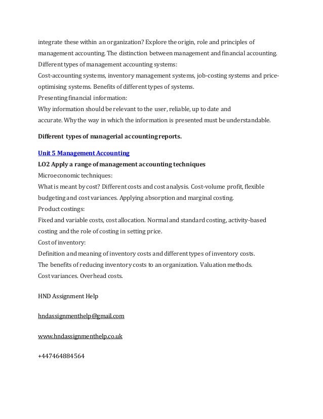 Unit 5 management accounting hnd assignment. Unit 5 Management Accounting LO3 Explain the use of planning tools used in management accounting Using budgets for planning and control. Explaining management accounting and the importance of integrating management accounting systems within an organization P1 M1 Benefits and application of management accounting systems. Management Accounting L4 Session.